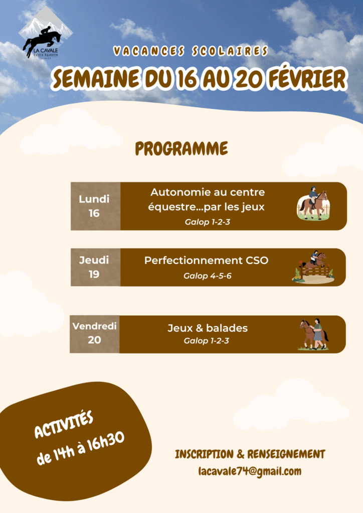 Renseignements et inscriptions sur: lacavale74@gmail.com